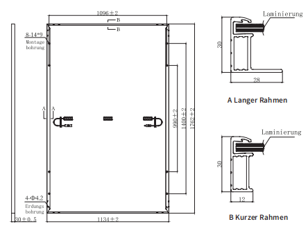 3-fache IEC-Prüfung nach neuer Norm bestanden, 25 Jahre Materialgarantie und 30 Jahre Leistungsgarantie.