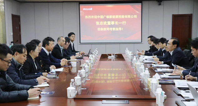 2月2日下午,中国广核新能源控股有限公司董事长张志武一行莅临一道新能源科技(衢州)有限公司考察,一道新能董事长、总裁刘勇,执行总裁石军,副董事长施思、高级营销副总裁黄卫红等陪同。