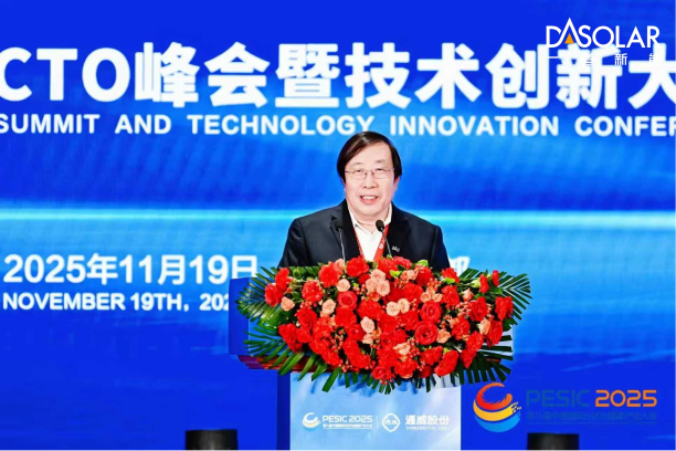 11月17-20日,2025第八届中国国际光伏与储能产业大会在成都召开,全球光储行业权威专家、领军企业家及政企学研代表汇聚一堂,以“光储深度融合,赋能双碳未来”为主题,直击产业技术迭代与价值重构等核心议题。在同期举行的首届光伏CTO峰会暨技术创新大会上,一道新能CTO宋登元博士作为对话嘉宾受邀参加CTO圆桌论坛,并发表《创新引领与前瞻布局:一道新能高效光伏技术与未来方向》主旨演讲,围绕先进光伏技术路线演进展开深度分享,前瞻性观点引发行业共鸣。同时,一道新能凭借技术领先性与卓越的市场表现,一举斩获PESIC 2025“中国光储前沿技术贡献奖”、“2025年度卓越组件企业奖”、“2025年度光伏组件优质企业”三项重磅奖项。