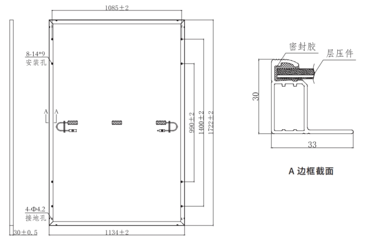 | 组件边框 | 阳极氧化膜铝合金(黑框) |