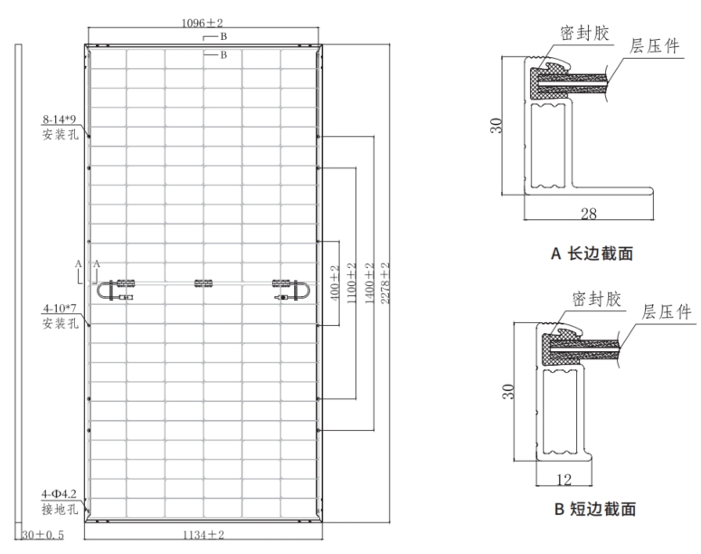 | 组件尺寸 | 2278×1134×30mm |